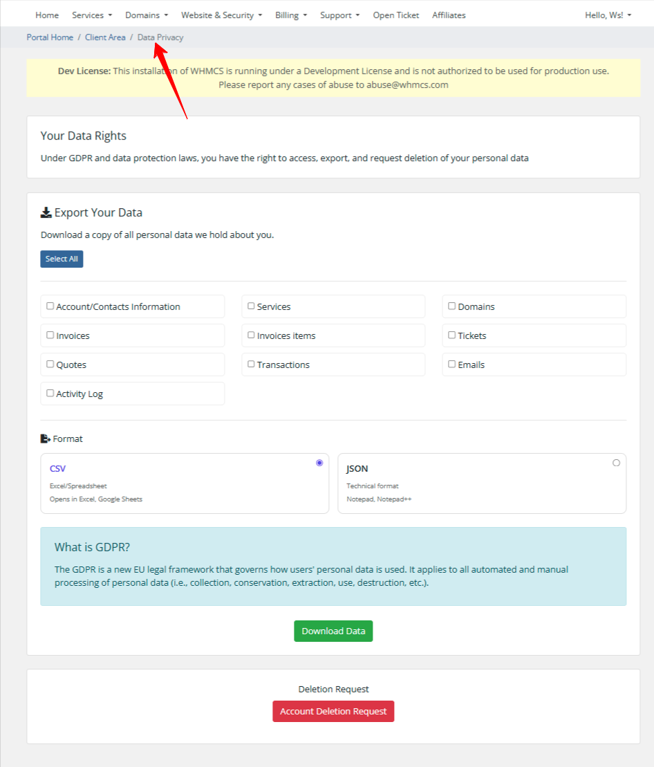 A Really great module. As GDPR consent is something very important nowadays and customer data removal is automatically provisioned, we avoid any worries thanks to WHMCS Services!