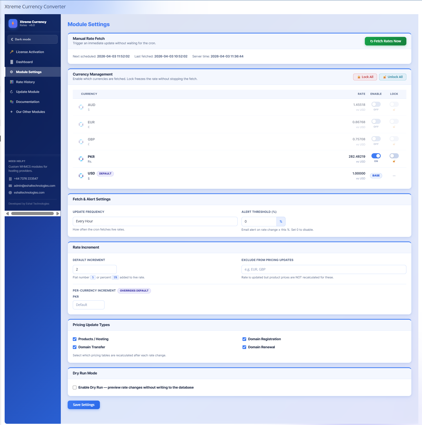 Xtreme Currency Converter works by connecting to reliable currency exchange rate APIs and automatically updating the conversion rates in real-time. This ensures that your prices are always accurate and up-to-date, even for currencies that are not natively supported by WHMCS.