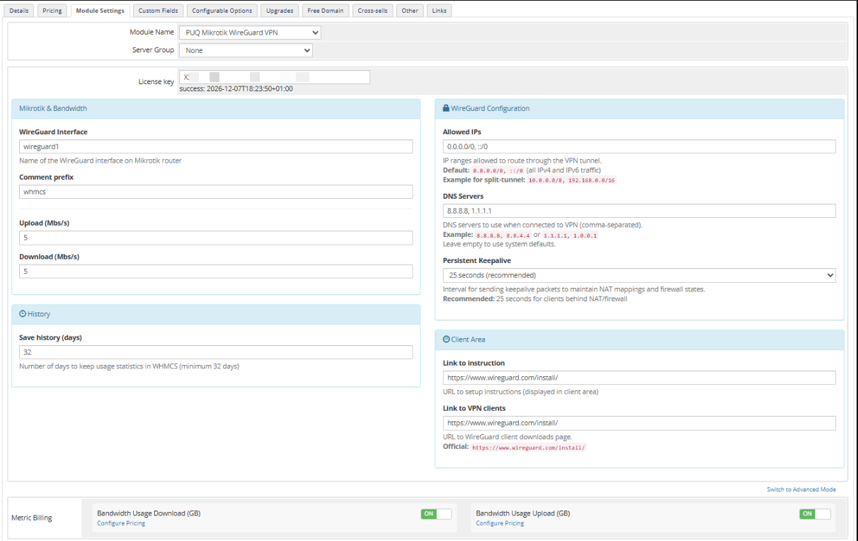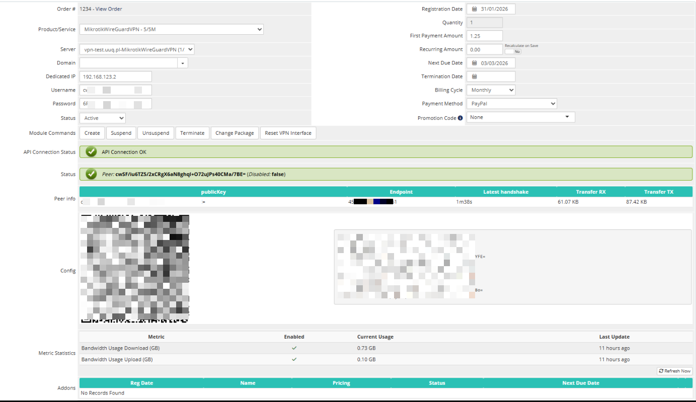The WireGuard VPN module provides the ability to sell the Virtual Private Network service to mass customers. You can use standard WireGuard mobile app for Android and iOS.