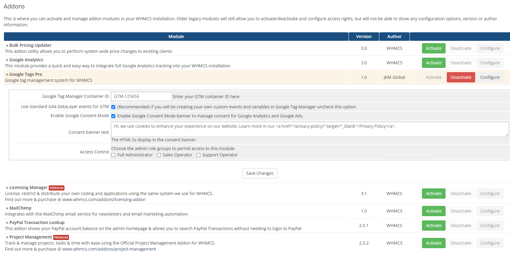 Unlock the full potential of Google Analytics 4 (GA4) and Google Ads with our cutting-edge WHMCS Google Tag Manager Module. Designed for seamless integration and ease of use, this module automates your GA4 tracking setup while incorporating advanced consent management through Google Consent Mode V2.