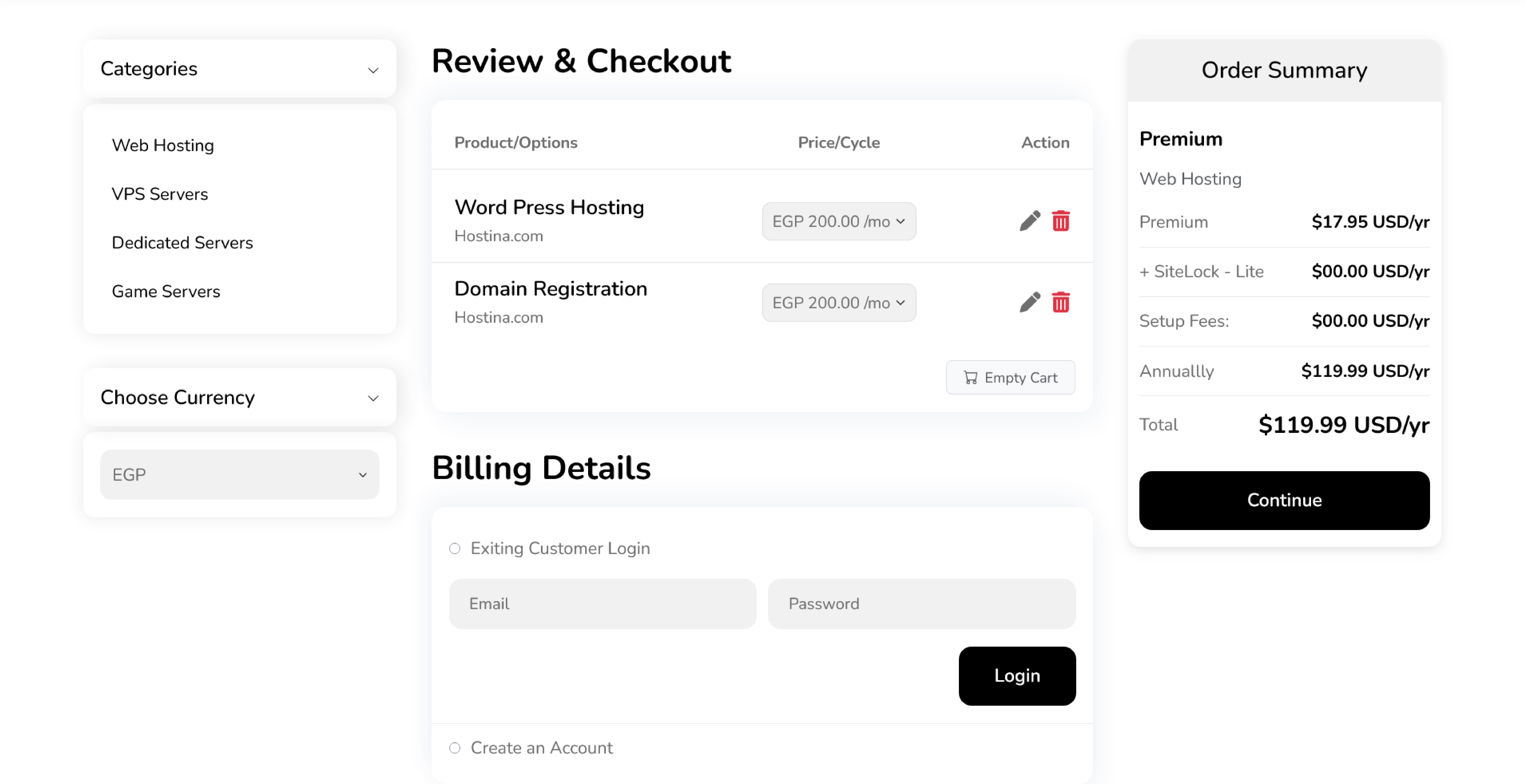 Hostina is a complete WHMCS solution — modern template, custom dashboard, and styled orderform checkout. Fully bilingual (Arabic/English), RTL + LTR supported, SEO optimized, and ready to install.