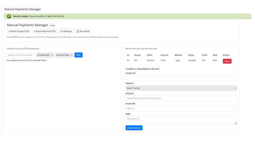 Perfect for hosting providers, resellers, and businesses that need a reliable way to manage offline payments within WHMCS.