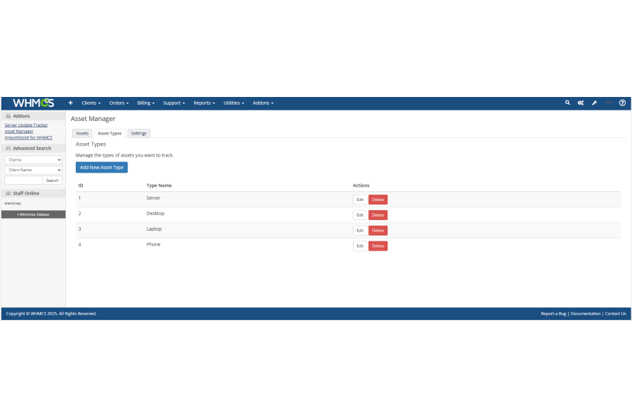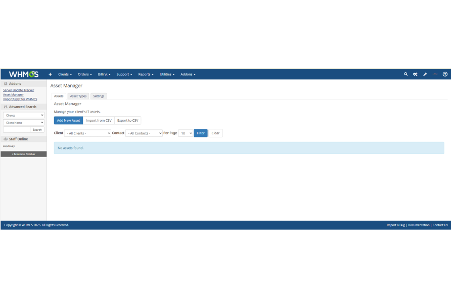 Done! The Asset Manager is now live and accessible from the Addons menu in WHMCS.