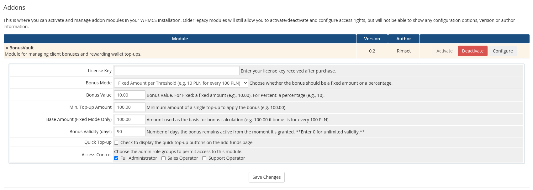 This is the first stable and feature-rich release of BonusVault, designed to be a comprehensive loyalty and bonus system for WHMCS from day one.