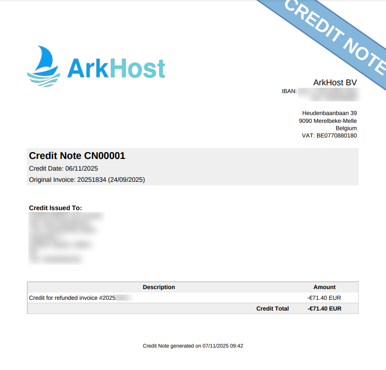 Automatically creates credit notes when you refund invoices. Professional PDFs generated, clients can view/download them. Simple, compliant, no hassle.