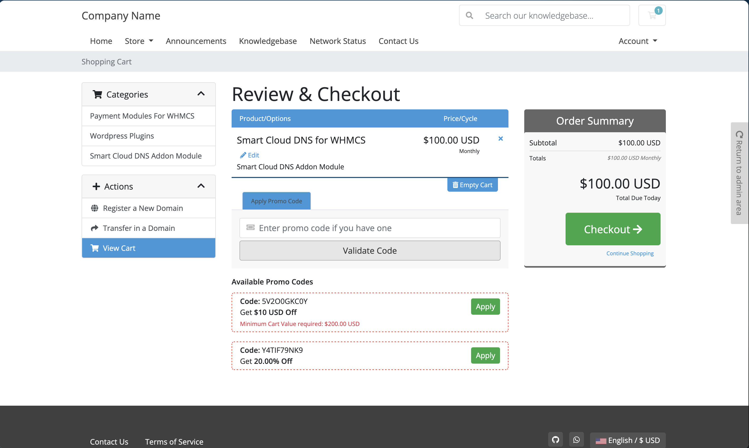Coupon Manager - View Coupons on Cart Page Coupon Manager for WHMCS allows your customers to instantly see and apply available promo codes directly on the cart page — before they proceed to checkout. Instead of leaving your website to search for discount codes, customers can view all active and valid promotions in one place. This reduces confusion, prevents loss of sales, and creates a smooth checkout experience.