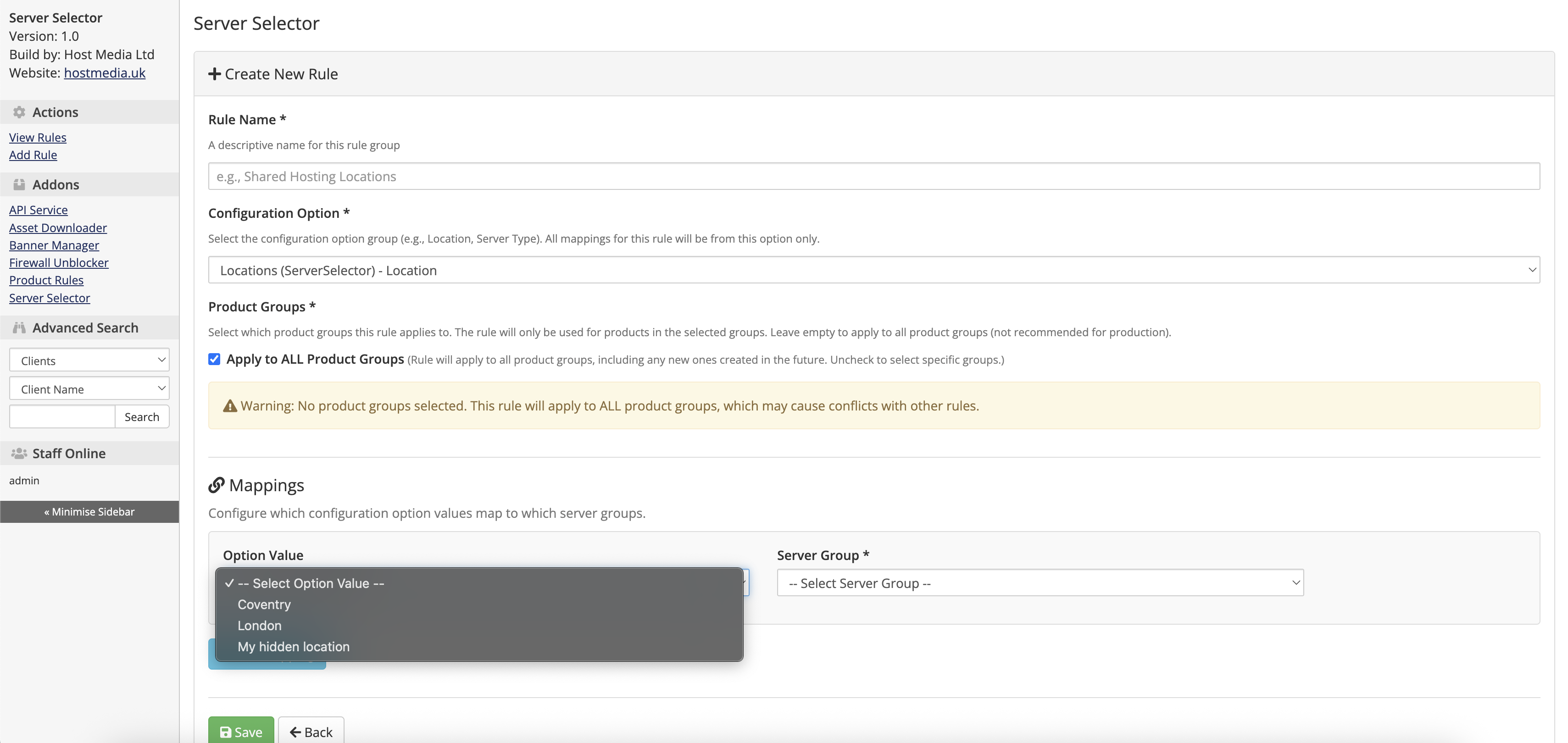 Admin Management – Configuring sever rules has never been so easy and integrates with core WHMCS functionality