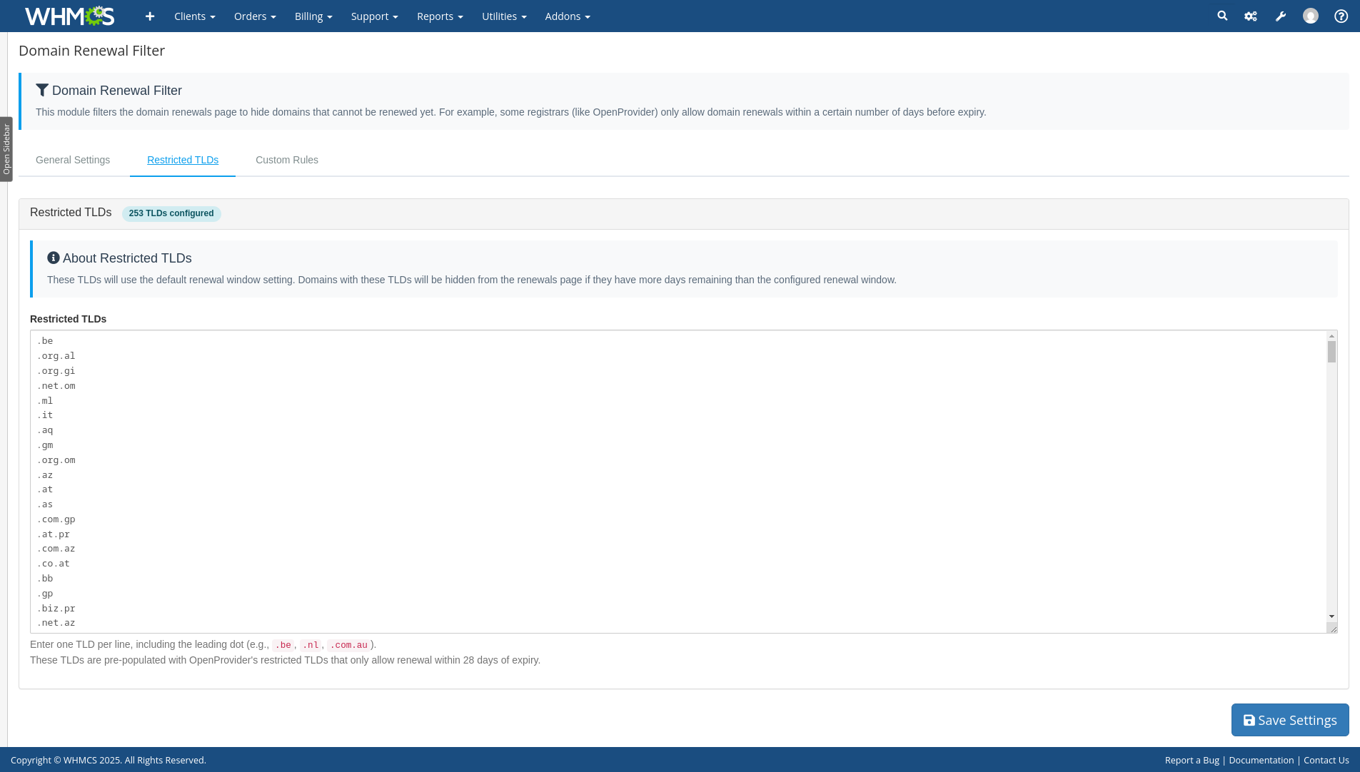 The Problem: Some TLDs (.be, .nl, .it, .de, etc.) can only be renewed 28 days before expiry. Without filtering, clients pay for renewals that fail at the registrar - corrupting invoice cycles and creating billing desync that requires manual cleanup.