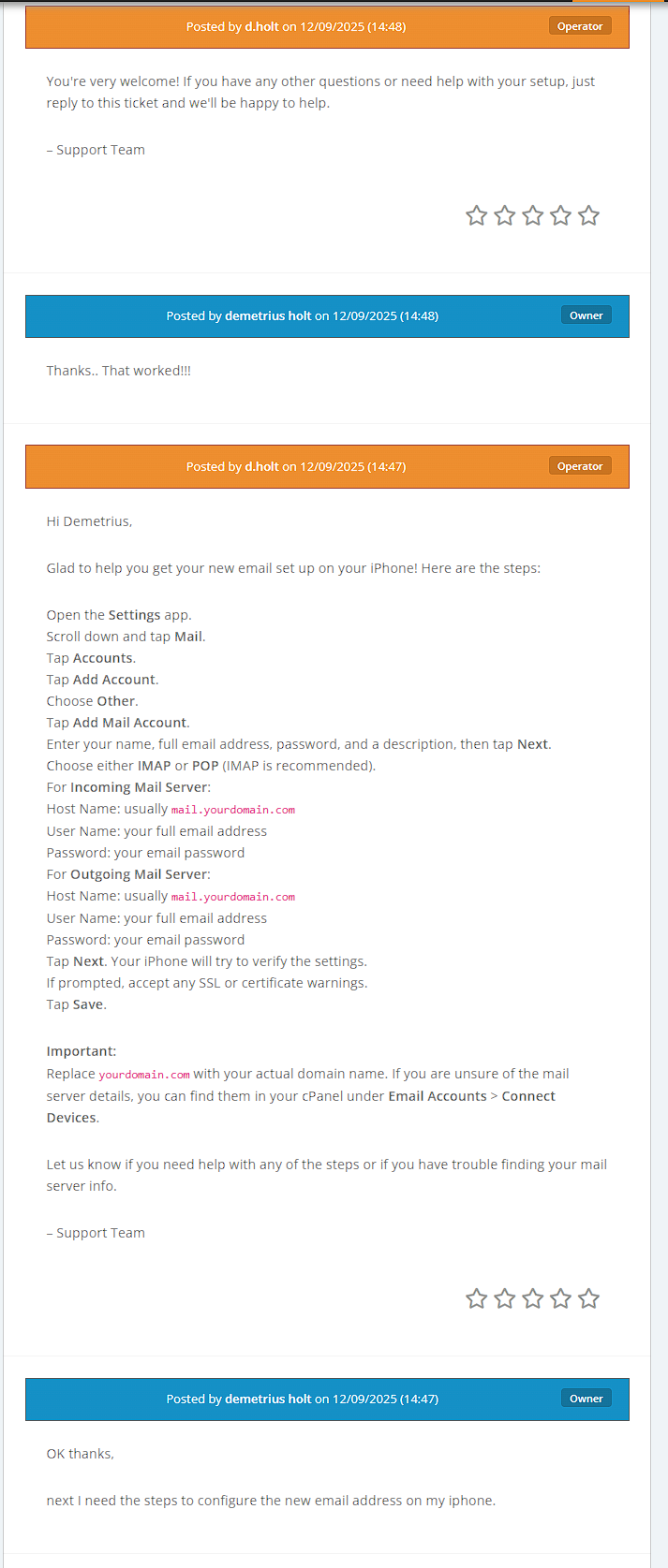 Support agents receive: