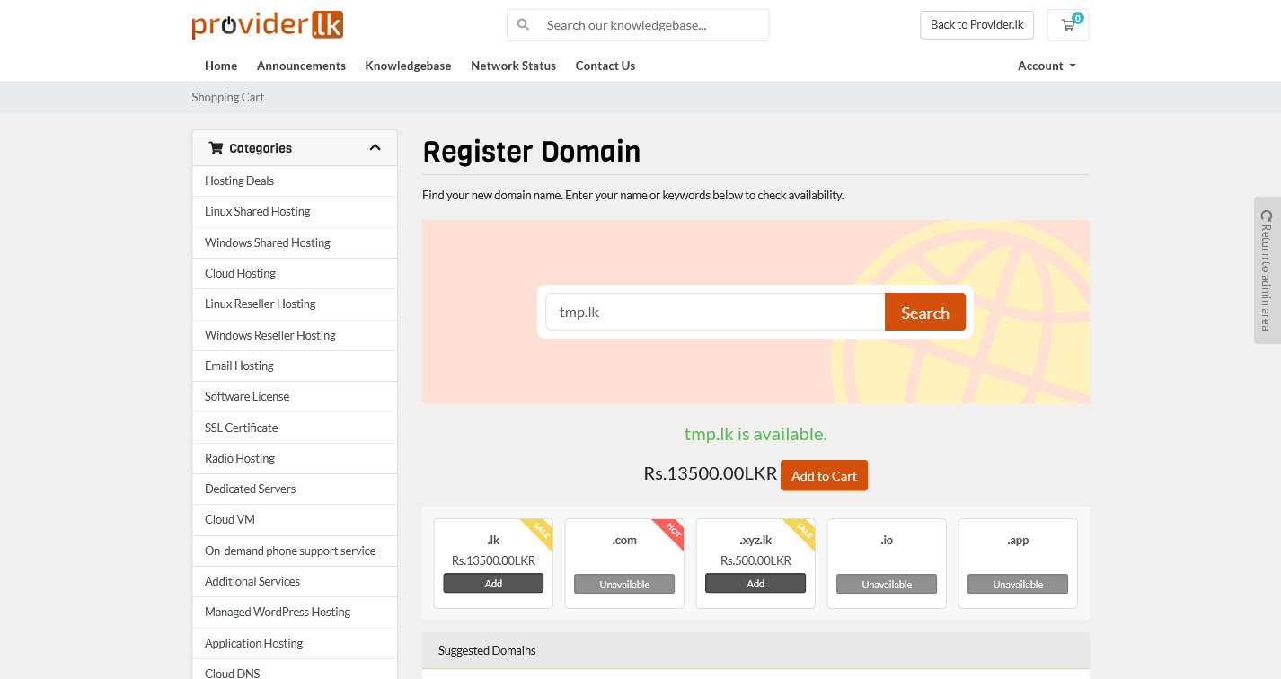 Provider.lk is a trusted Sri Lankan domain solutions provider specializing in .LK domain automation and registry-level integrations for hosting companies, developers, and domain resellers using WHMCS.