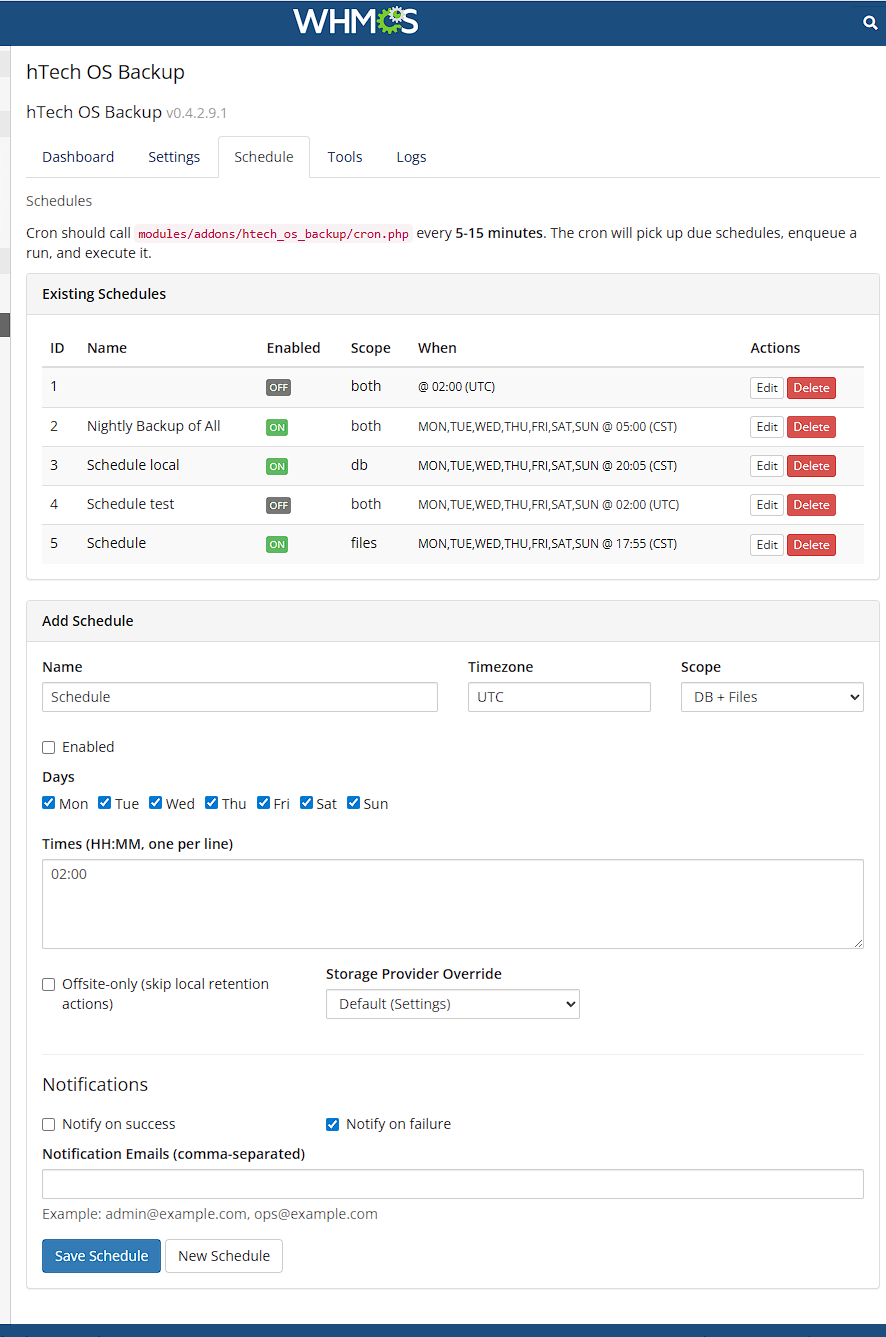 hTech Off-Site Backup is a professional-grade WHMCS addon module designed to give hosting providers reliable, flexible, and secure off-site backups for their WHMCS installation and critical data.