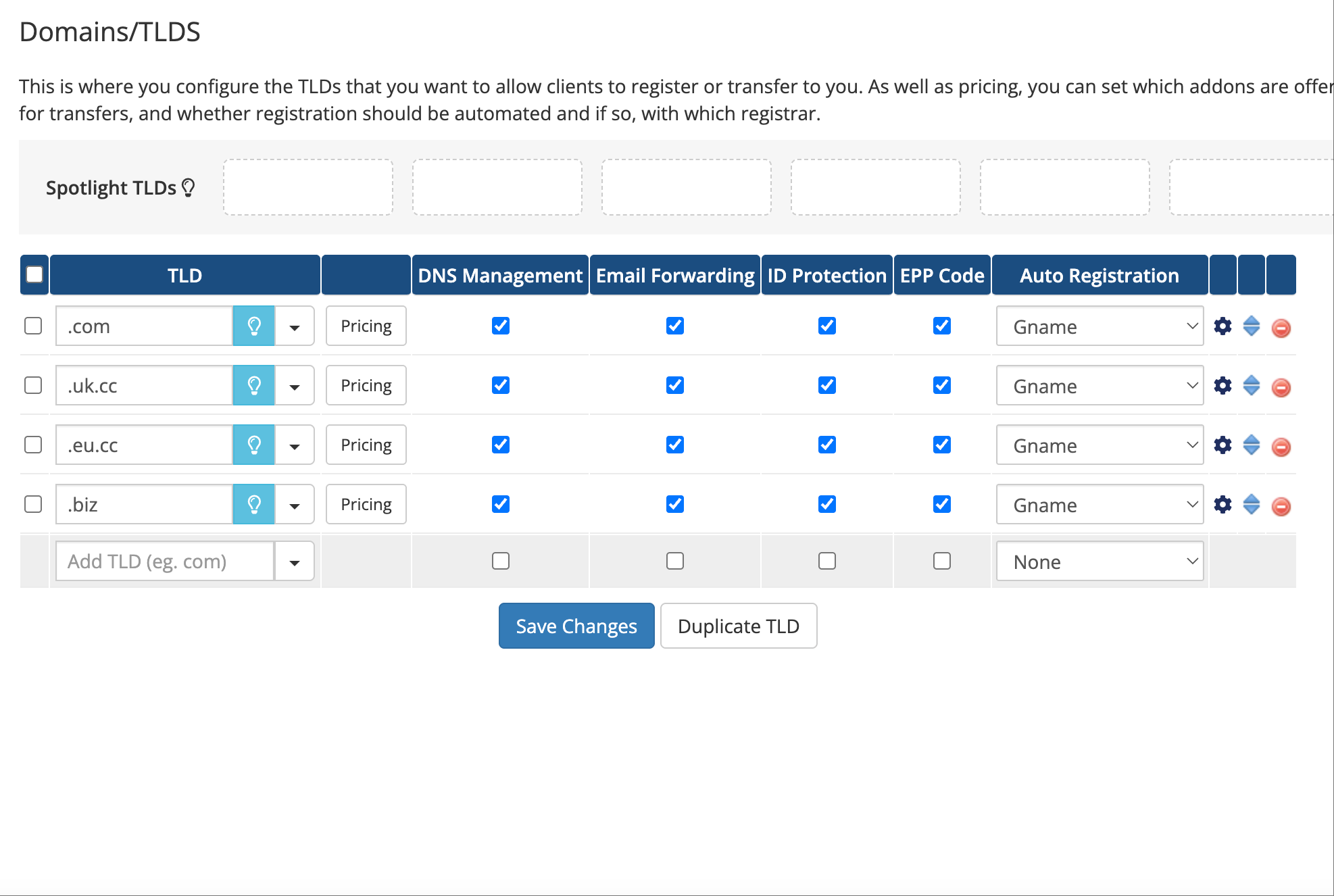 The OpenSRS Domains Pro module allows you to register, renew and transfer domains from an ever-expanding selection of TLDs, including many new gTLDs. This module supports domain locking and WHOIS Privacy for select TLDs, as well as WHMCS Domain Sync.