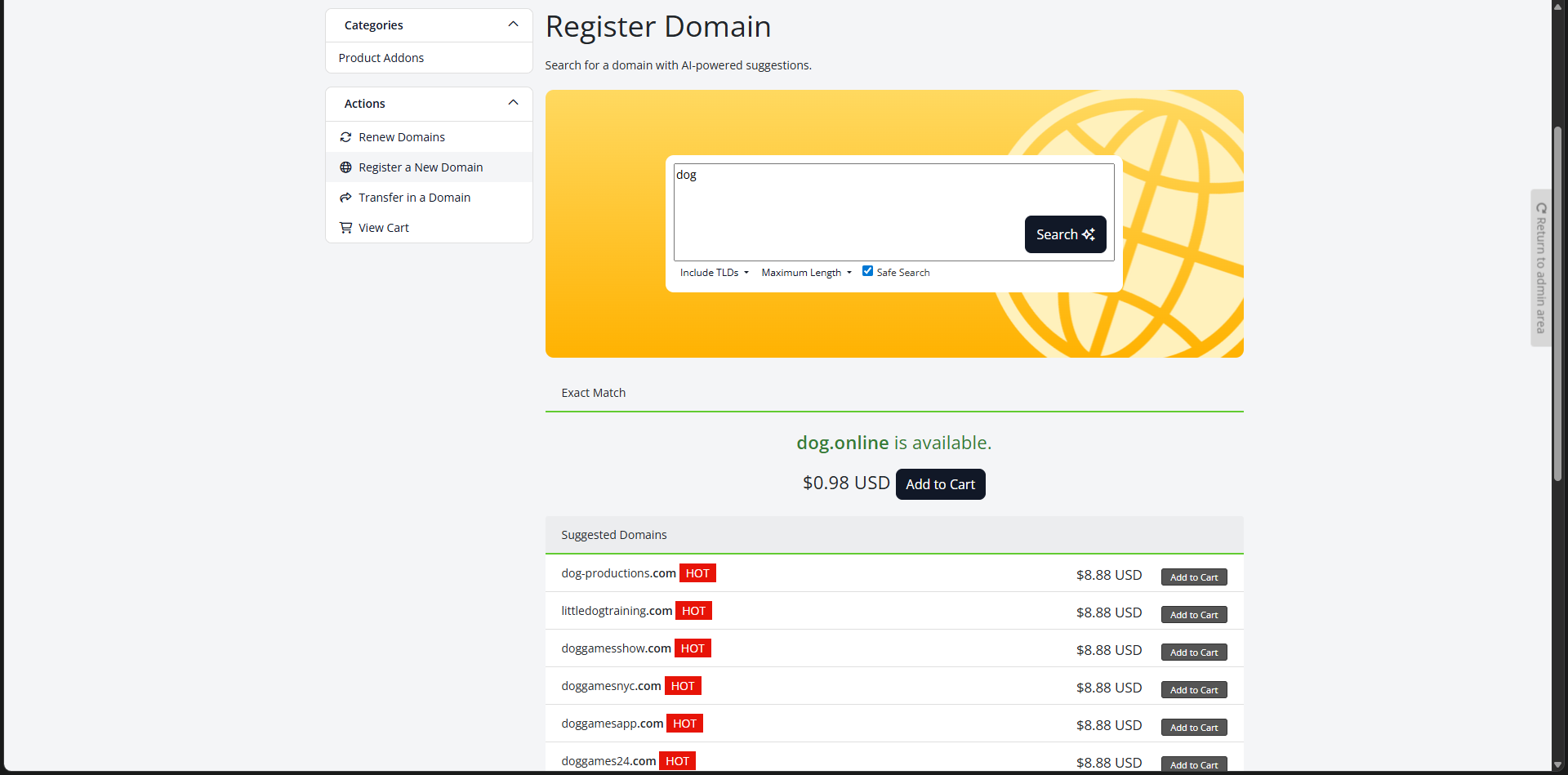 Manage, acquire, renew, and transfer your Dynadot domain names using WHMCS.