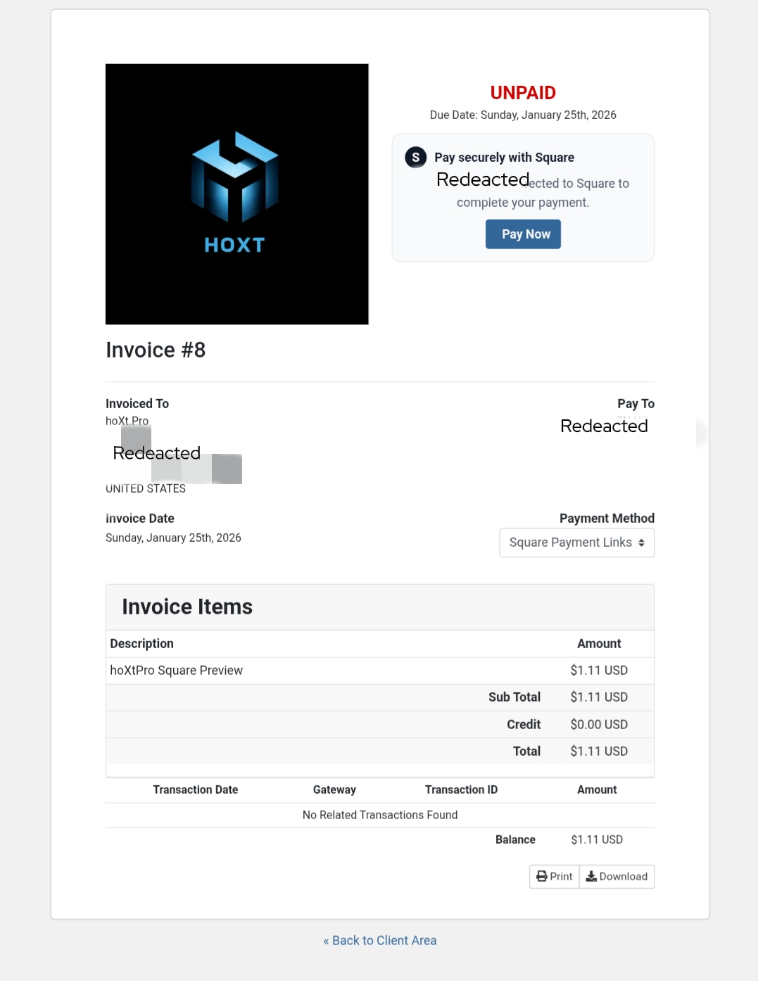 reference_id to mark invoices paidwhmcs.json metadataThis listing represents the annual license for the hoXtPro Square Payments Gateway.
