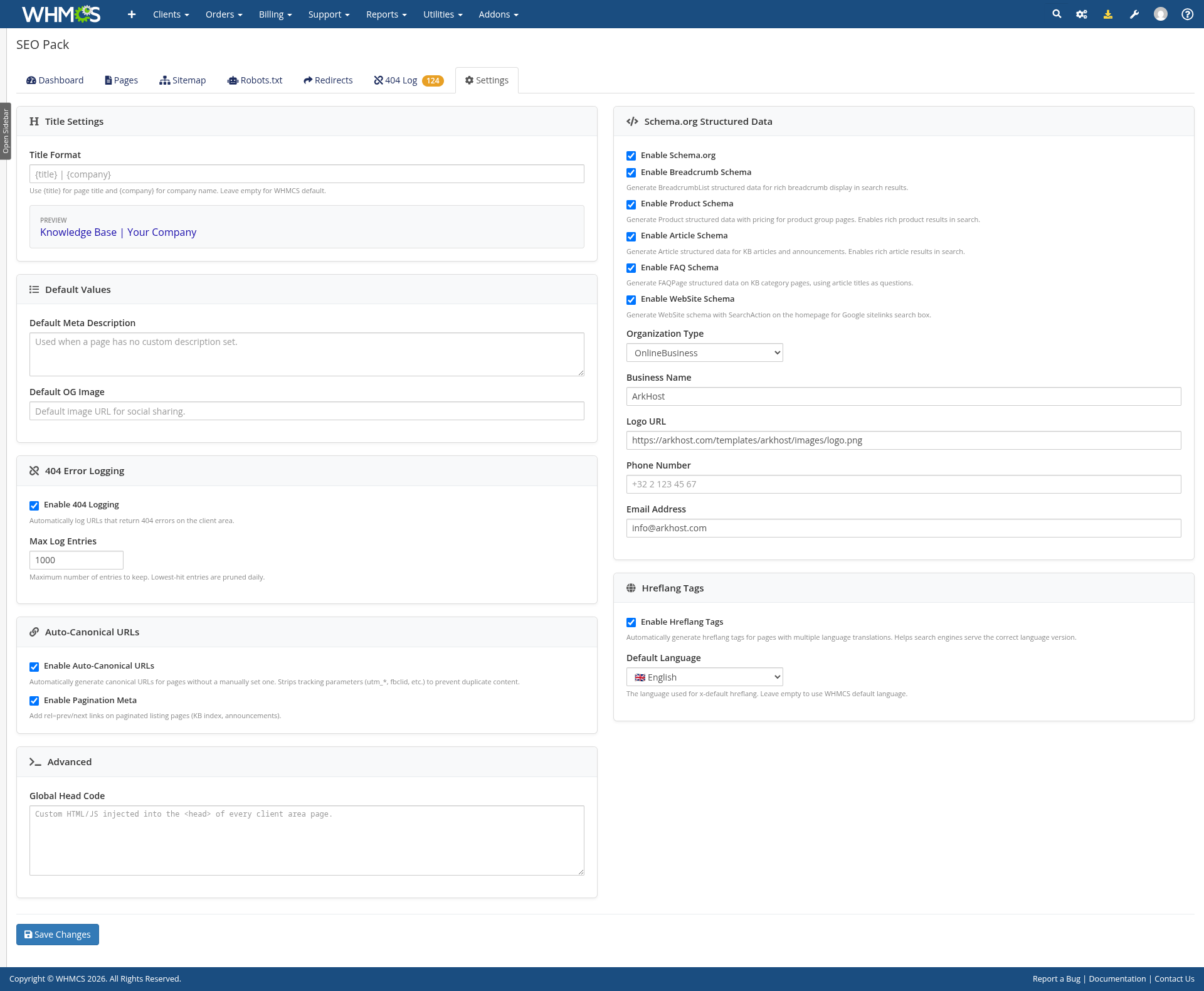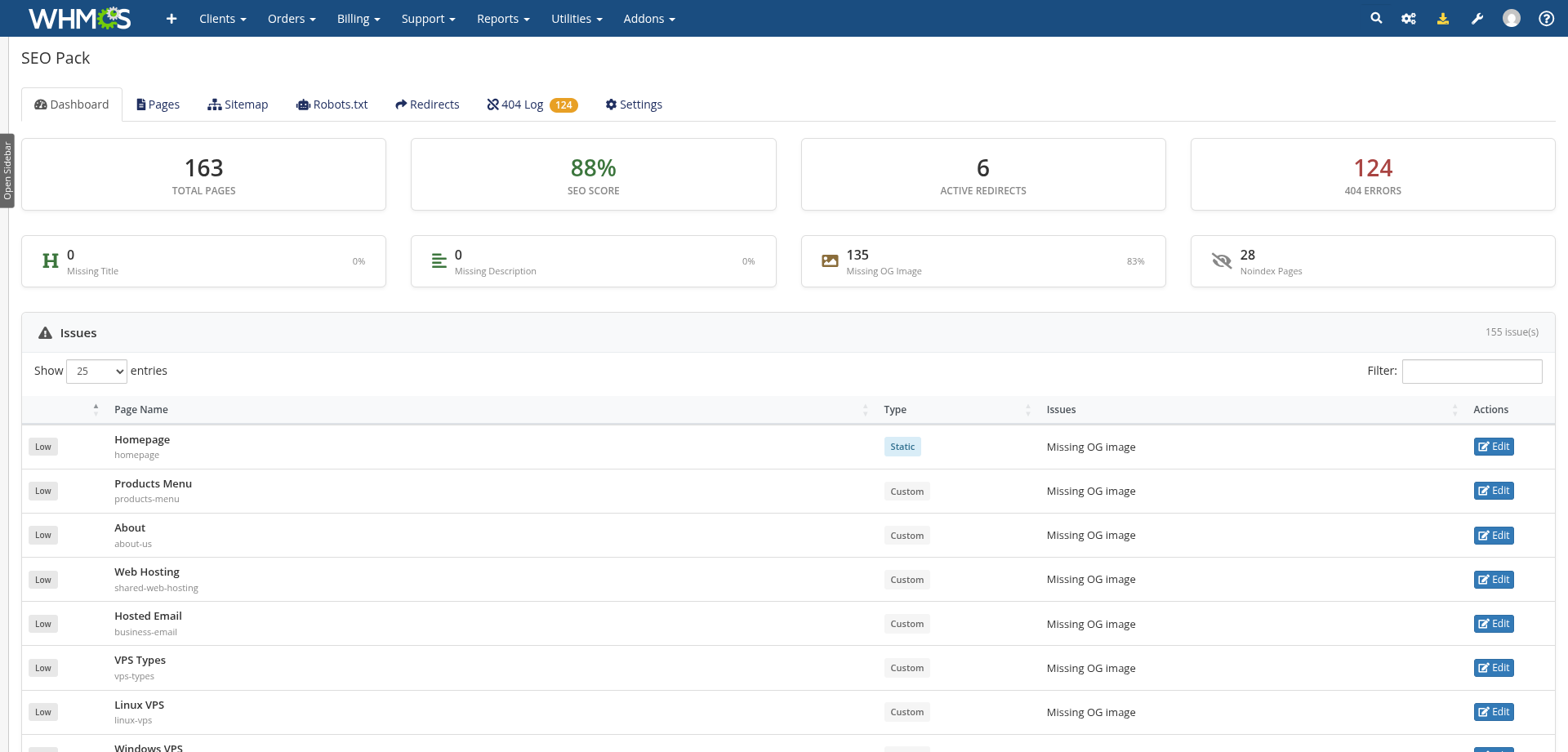 SEO addon for WHMCS. Manages on-page SEO, structured data, and technical SEO across your entire client area.