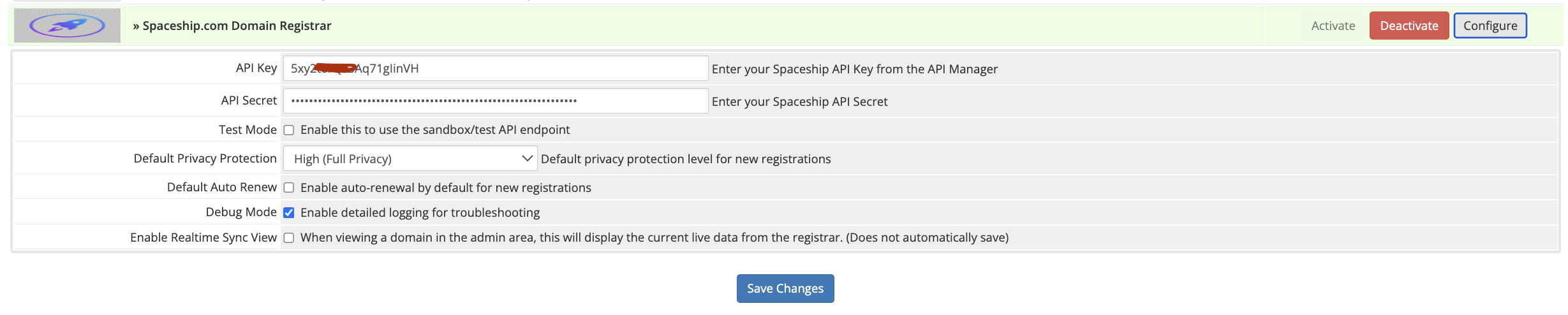 modules/registrars/spaceship/ folder to your WHMCS installationEnable Debug Mode in the module settings to log API interactions in System Logs > Module Log.