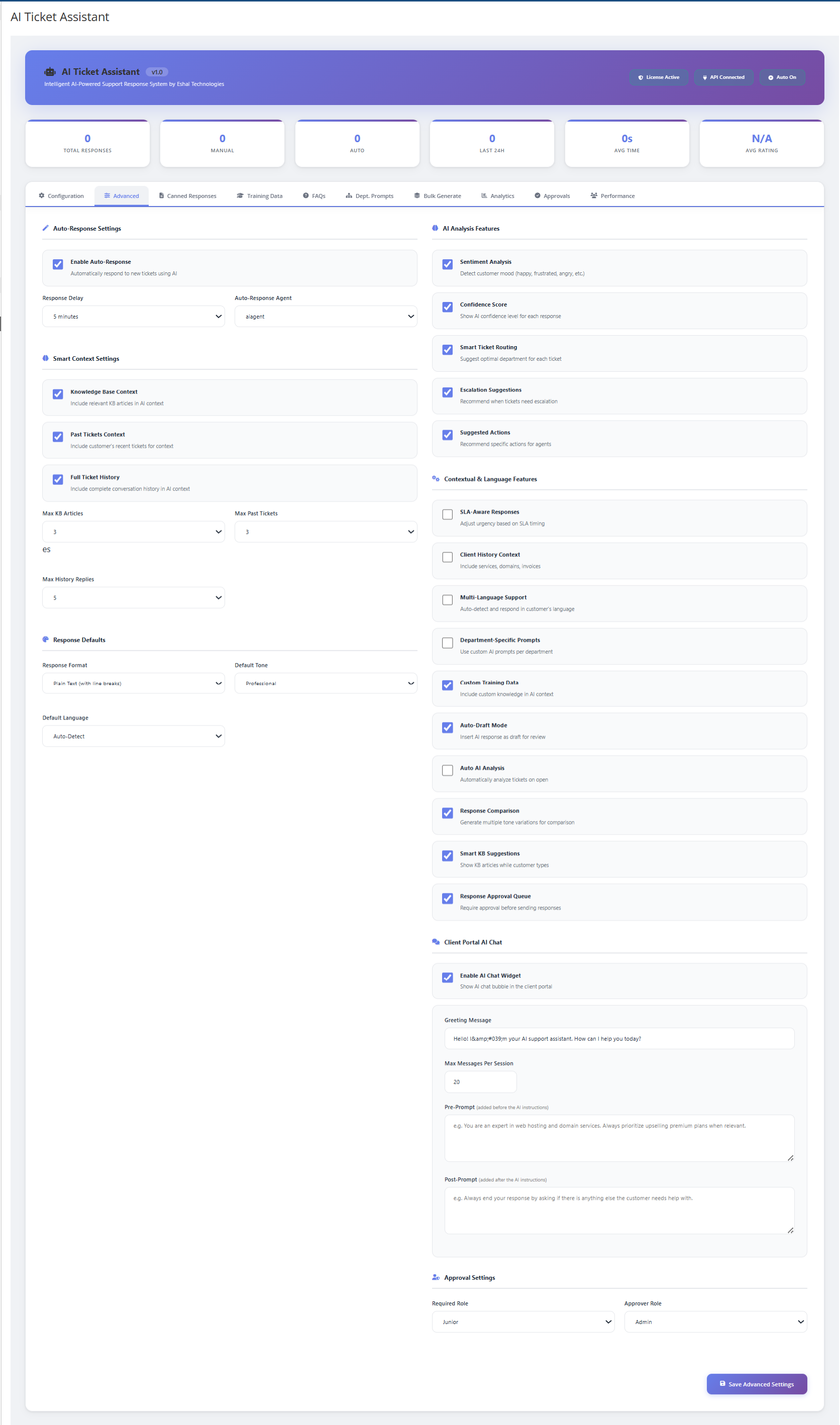 - Auto-Response on New Tickets — automatically generate and send AI responses when tickets are opened