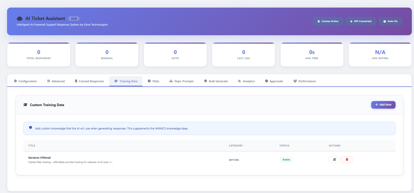 - Custom Training Data — teach the AI about your specific products, services, and policies
