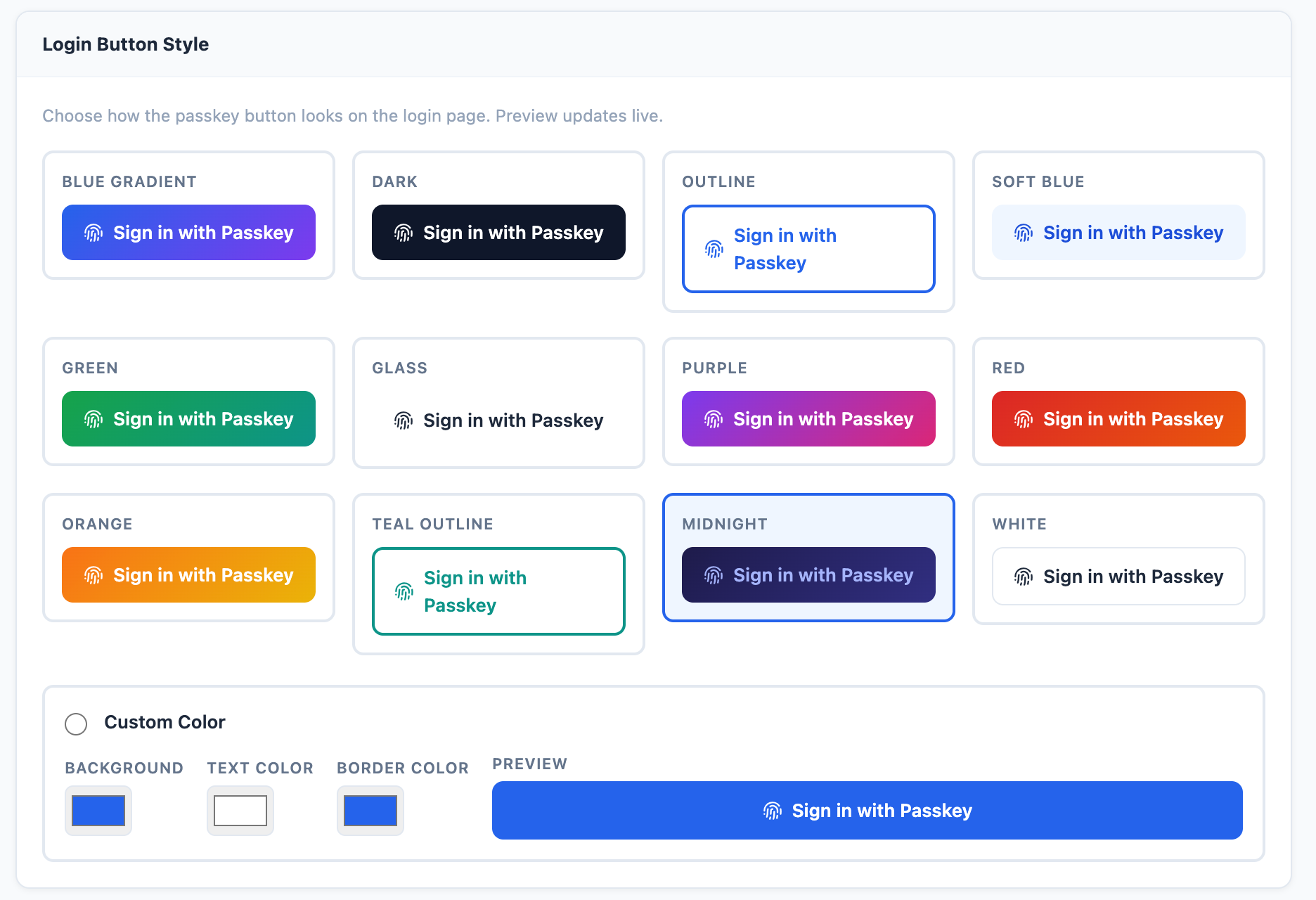 WebAuthn / FIDO2 Passwordless Authentication. Clients log in using Face ID, Touch ID, Windows Hello, or a hardware security key — no passwords required. No phishing. No friction.
