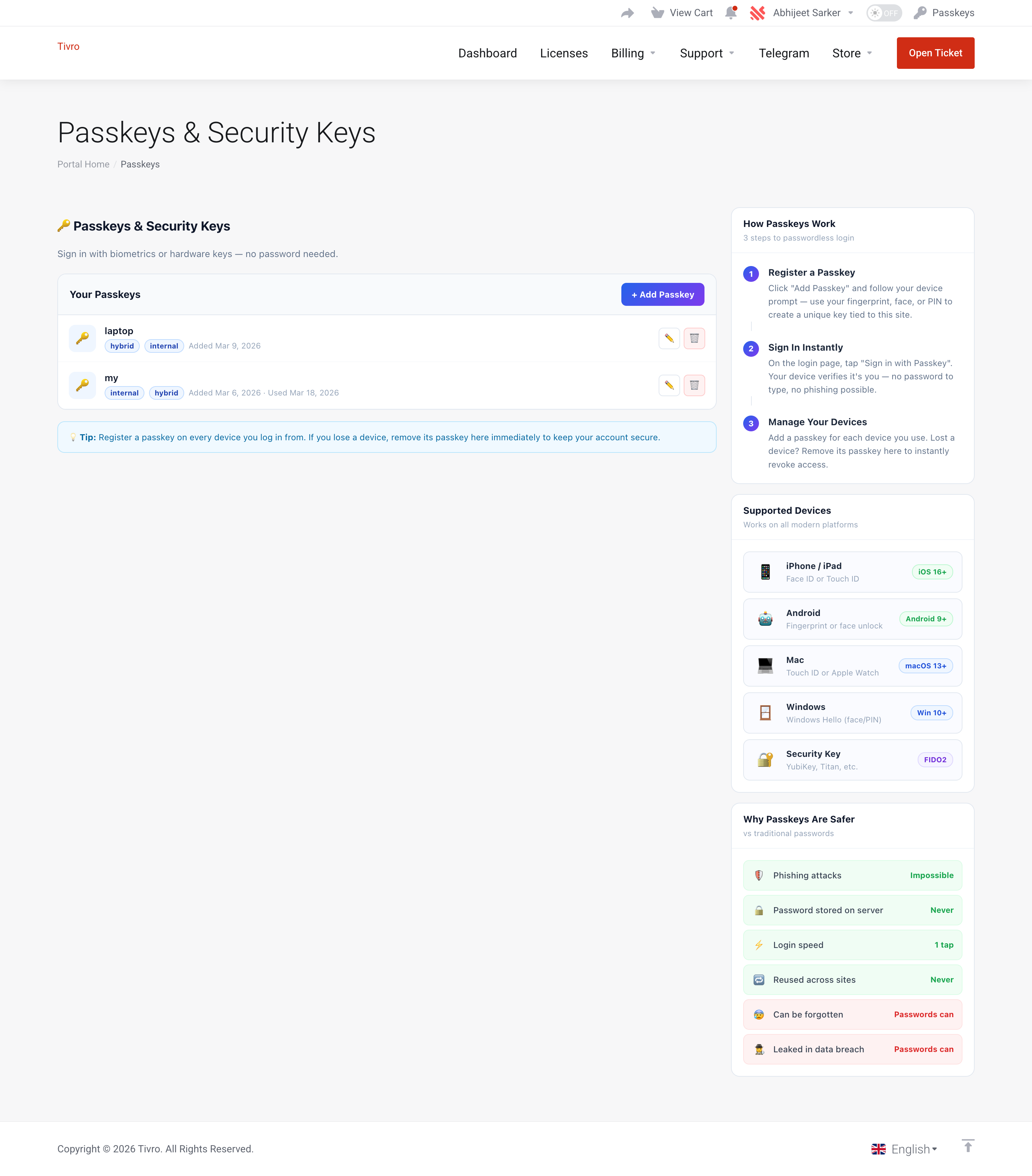 Be the first to review TivroPassKeys — Passwordless Login for WHMCS.