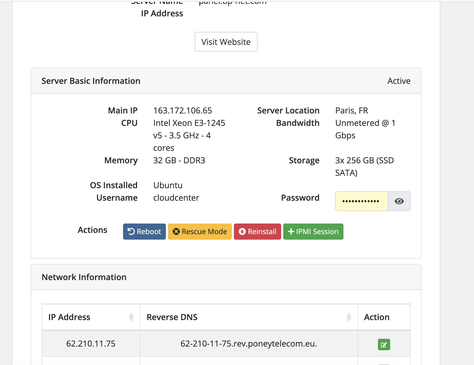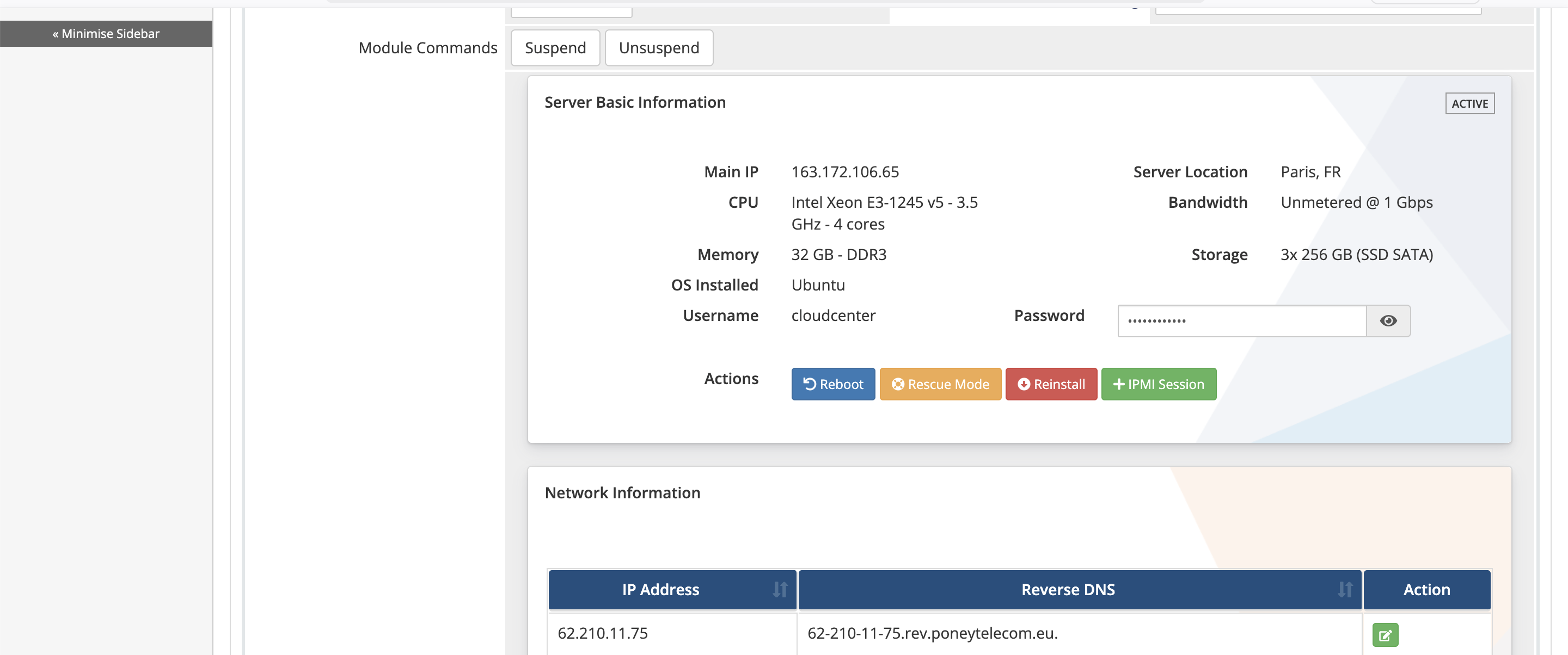 This WHMCS module allows you to resell dedicated servers from OneProvider using their official API. It provides both administrators and end clients with direct access to essential server management features, all from within the WHMCS interface.