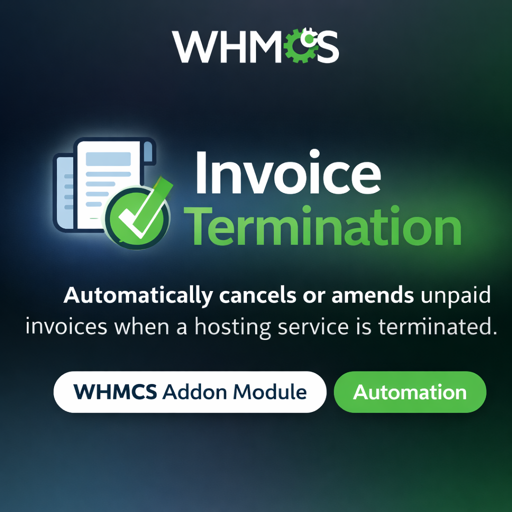 When a hosting account is terminated, unpaid invoices connected to that service can remain behind and create unnecessary confusion for admins and clients. This addon automatically steps in after a successful termination and checks related unpaid invoices linked to the service.