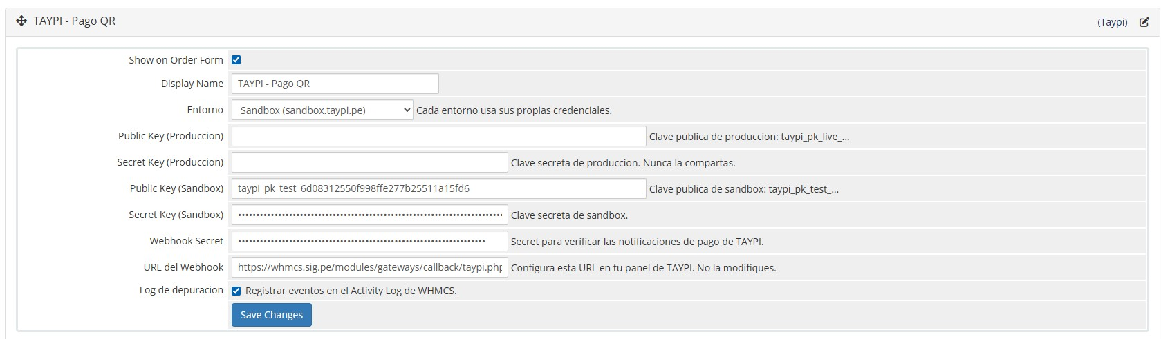 callback/taypi.php y callback/taypi-verify.php a /modules/gateways/callback/