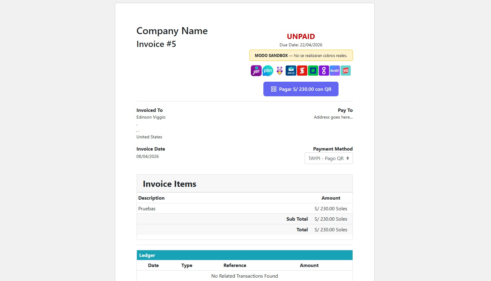 Let your customers pay invoices by scanning a QR code from Yape, Plin, or any banking app connected to Peru's interoperable payment system.
