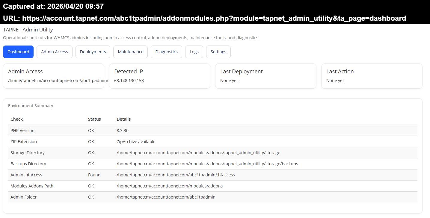 TAPNET Admin Utility is a centralized toolkit designed to simplify and secure how you manage your WHMCS environment.